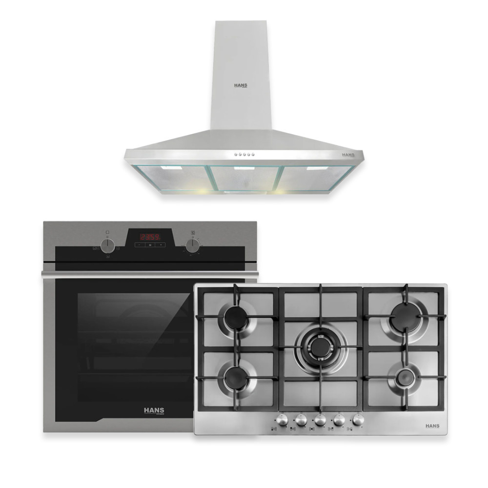 هانز فرن بلت ان غاز 60 سم استانلس مع شفاط 90 سم ستانلس و مسطح بلت ان 5 شعله ستانلس