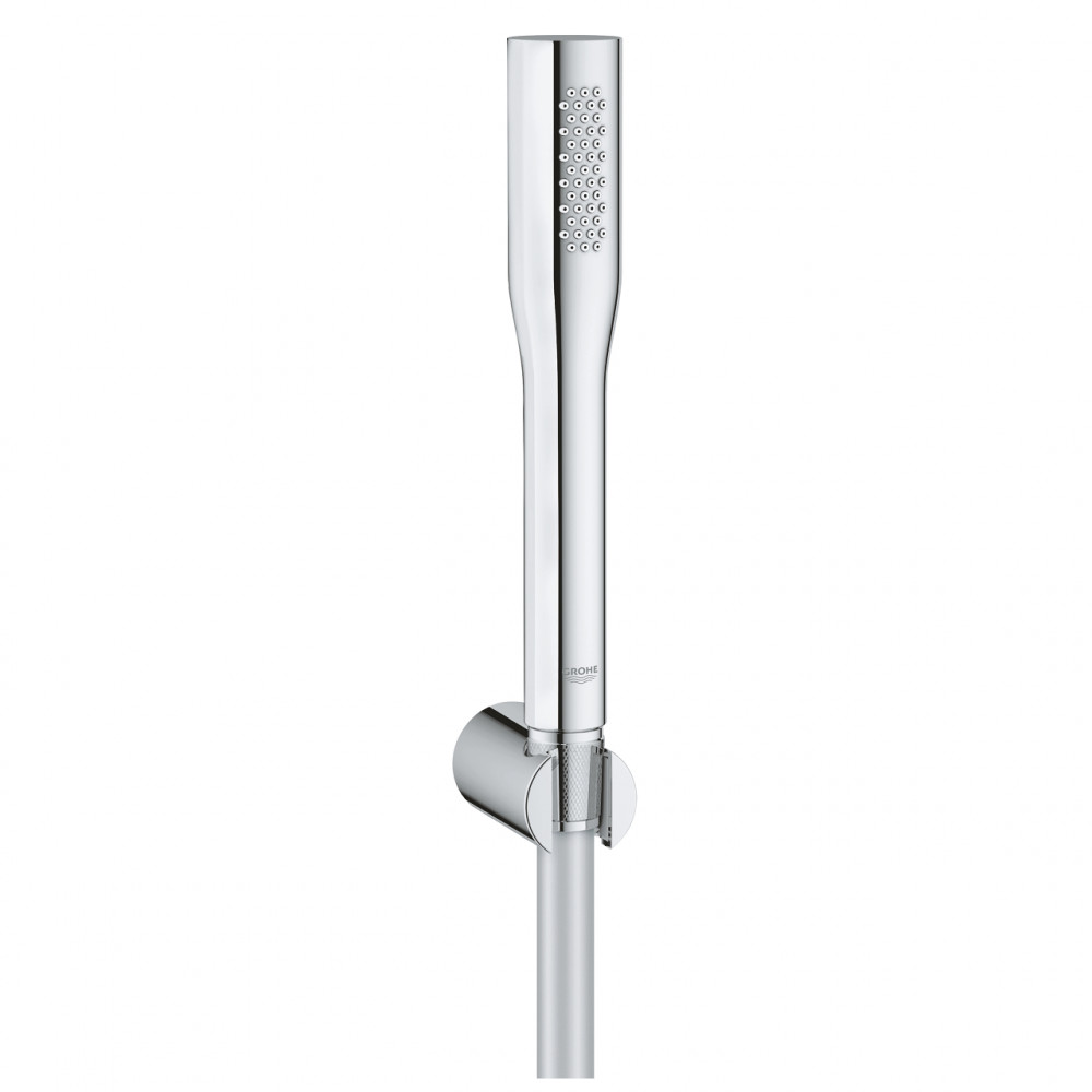 سماعة دش بالحامل كروم من خط يوفوريا كوزموبوليتان من جروهى يضفي لمسة ديكورية جميلة على حمامك. يوفر توازناً مثالياً بين الأناقة والوظائفية. مصمم لتوفير تجربة استخدام ممتعة ومريحة.