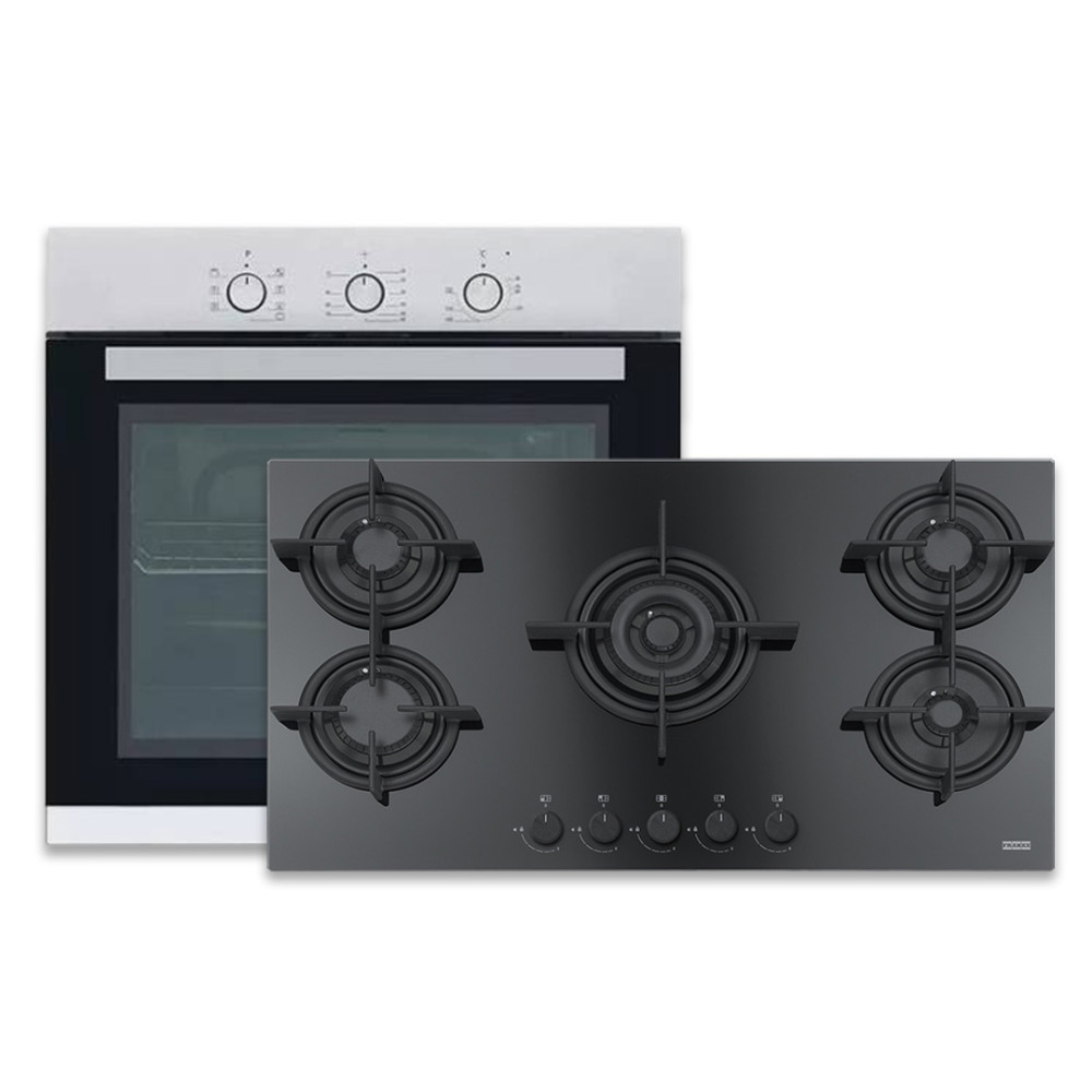 مسطح غاز 5 شعلة 90سم أسود وفرن غاز 60 سم فرانكي