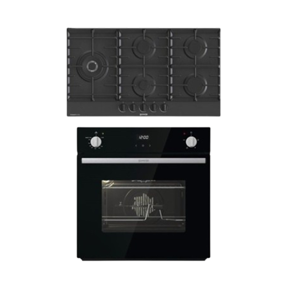 Gorenje Built-In Gas Oven 60 cm with Gas Hob 5 Burners 90 cm Black