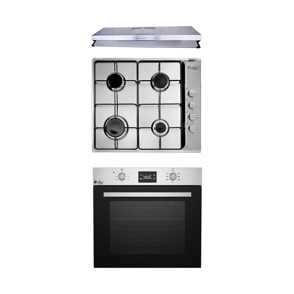 شفاط مطبخ ومسطح غاز و فرن كهربا 60 سم استانلس ستيل من بيورتى