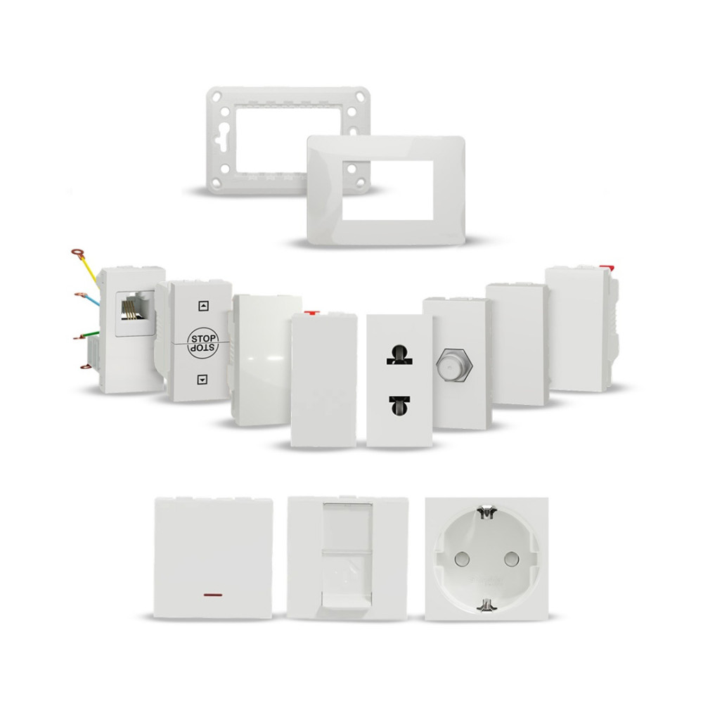مع باقة تشطيب كهرباء نيو يونيكا من شنايدر تمتع بمجموعة مميزه من وشوش الكهرباء والمفاتيح والبرايز ذات الجوده العالية كل منها مصمم بدقة لضمان أفضل استخدام واعلى جودة بالاضافه الي 24 لمبه هديه.