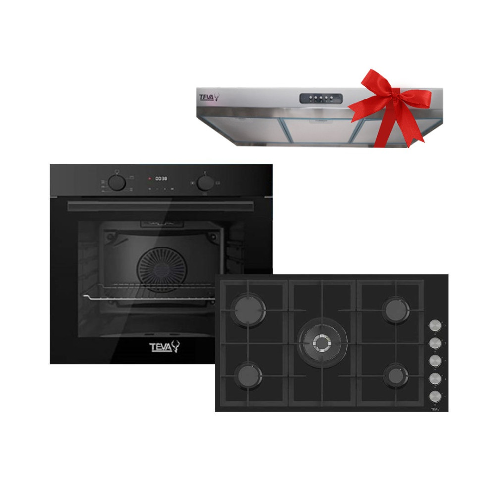 فرن غاز بلت ان 60 سم مع مسطح غاز بلت ان 90 سم اسود تيفا